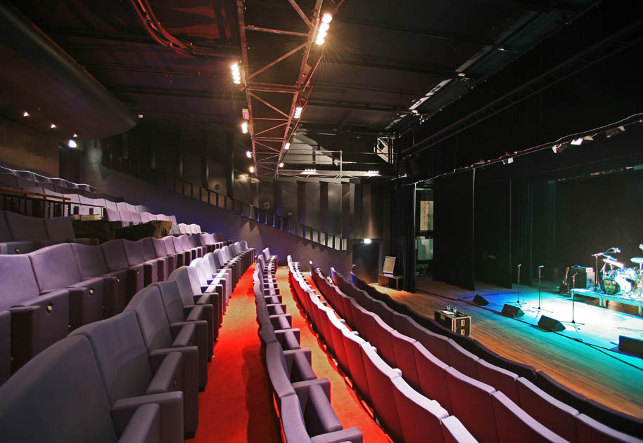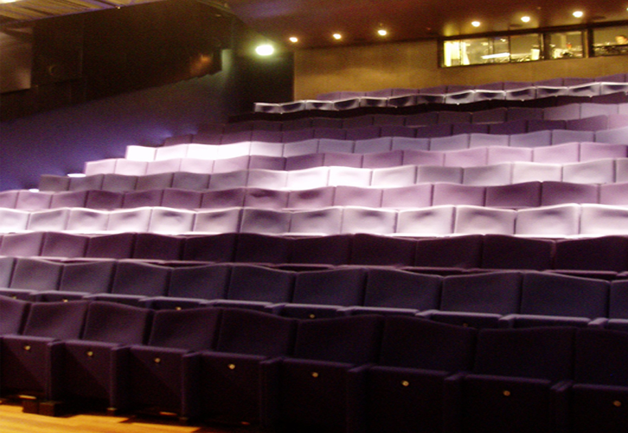 De violet blauwe stoelen waarvan de rugleuningen een zacht golvende lijn vormen, geven het theater kleur en vormen door hun ontwerp een geheel in plaats van 275 losse elementen. De rijnummers van de stoelen zijn met heldere witte cijfers in het donkere tapijt geprint en lijken op te lichten in het schemerige licht van het theater. De wanden van het theater zijn voorzien van een akoestische betimmering en onder het plafond is een klankkaatser aangebracht. Door de uitgebreide akoestische en technische voorzieningen en het grote podium leent het theater zich uitstekend voor voordrachten, muziek of dansvoorstellingen. De wanden, vloer, loopbruggen, techniek en het plafond zijn nachtblauw gelakt waardoor de techniek wegvalt tegen de achtergrond en alle aandacht naar het podium gaat.