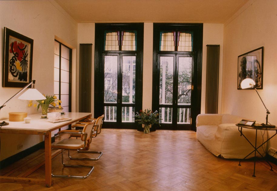 Inrichting en verbouwing van drie verdiepingen van een benedenhuis in oud zuid. In het bovenhuis woont een familie met 4 kinderen en een piano op een parketvloer. Daarom worden beneden en bovenhuis door middel van een geluidsdichte isolatie akoestisch van elkaar gescheiden. De plattegrond op de 1e verdieping wordt aangepast. Er komen twee grote slaapkamers gescheiden door een badkamer en inloopkast, die vanuit een slaapkamer ontsloten worden. Een logeerkamer, twee werkkamers, een extra badkamer en een keuken. Originele elementen zoals de oorspronkelijke ensuite schuifdeuren worden in een andere setting herplaatst.